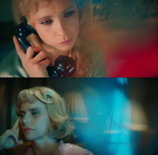 静态镜头的色彩流动,衬托人物的复杂心境。