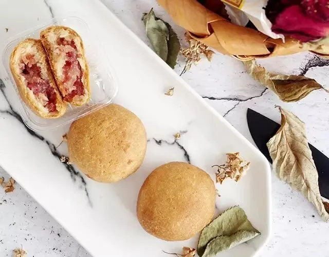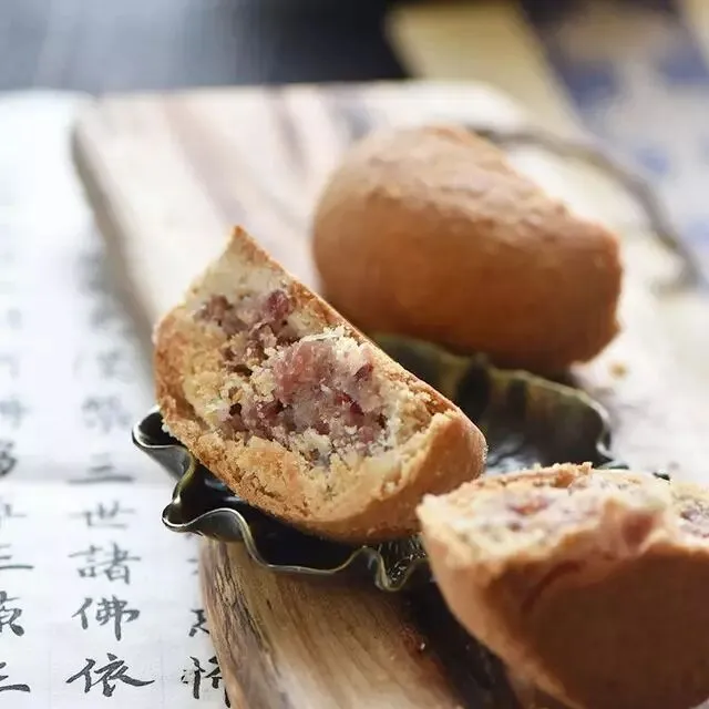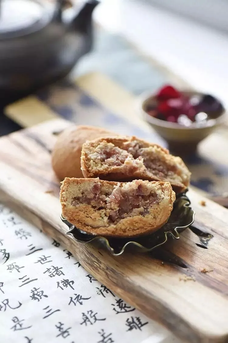 火腿切成碎粒,放入面粉、砂糖、蜂蜜、猪油拌到均匀,在热力的作用下,咸鲜、香甜两种滋味充分融合,成就了一种独特的丰腴口感,叫人一试难忘。