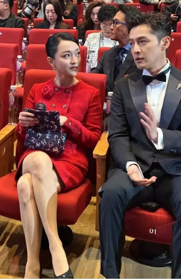 进场后坐在了胡歌身边,帅哥美女同框真的特别的养眼。