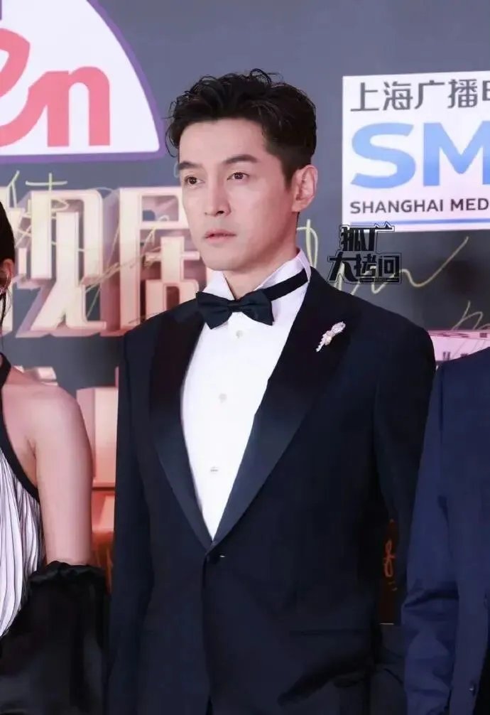 胡歌今年穿的礼服和去年的有九分相似,唯一区别就是今年衣领上多了一枚钻石胸针,演了宝总后身价都不一样了。
