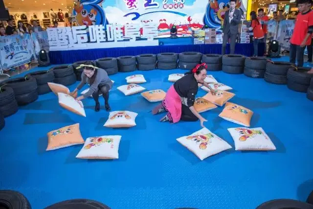 翻靠垫比手速、撕名牌比反应、三人四足比默契