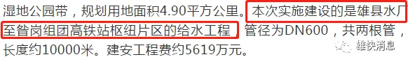 毕竟此工程是雄县高铁站枢纽片区及昝岗组团的供水工程