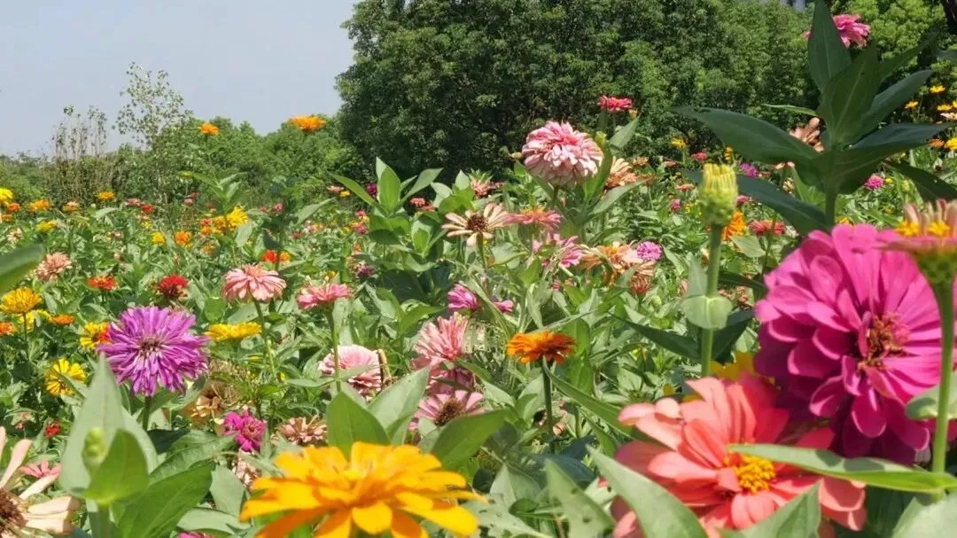 炎炎盛夏,东岸滨江耀华滨江绿地内的百日草花海头顶骄阳,应势盛开,宛如一幅迷人的五彩画卷。
