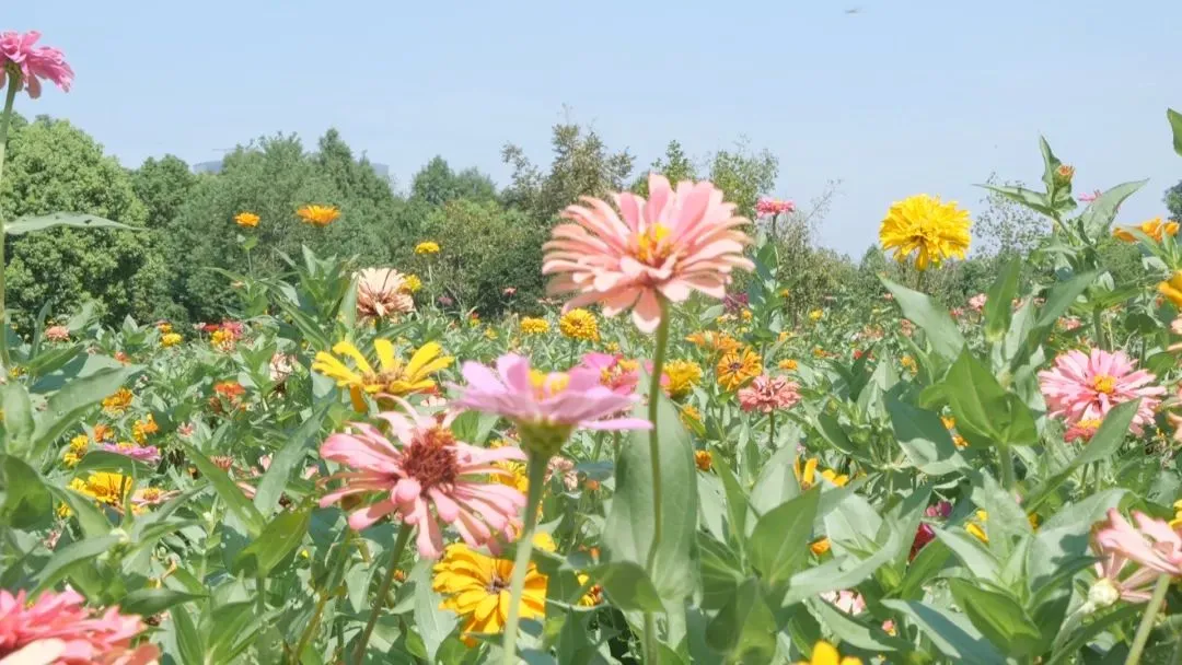 处暑时节,一同战高温的还有东岸滨江一大片百日草花海,如今花开正好。