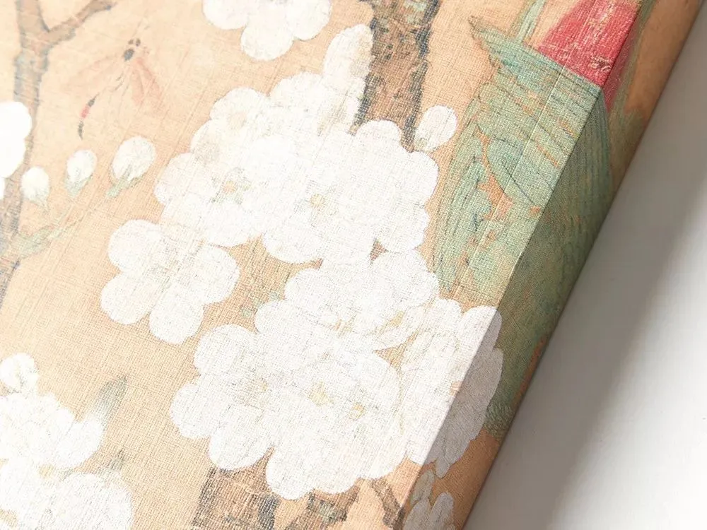 封面使用布纹纸,近看纹理细腻,呈现了古典绘画中“绢本设色”的仿真效果。