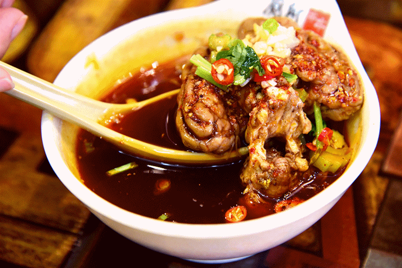 大块白嫩的蛙肉再红汤中沐浴后肉质弹嫩,