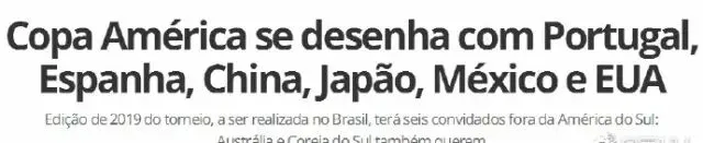 据巴西媒体《环球体育》报道,2019年美洲杯赛事计划再次邀请中国队参赛。这次,中国足协会让中国队欣然赴约吗?