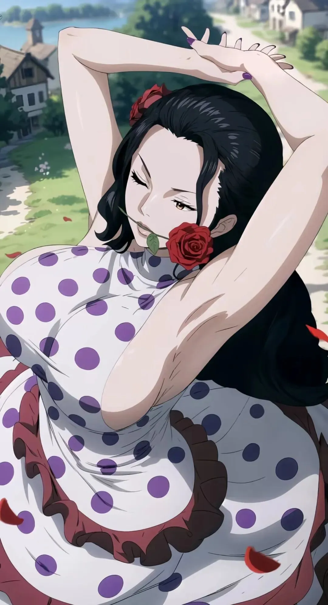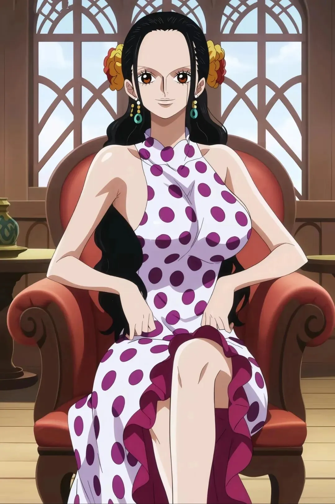 她的风华,是刻在骨子里的,是德雷斯罗萨的日光与月光都描摹不出的绝色。纵使身陷多弗朗明哥的阴谋囹圄,那双含嗔的媚眼深处,依旧藏着公主的傲骨与坚韧。媚眼如丝含嗔意,紫罗兰风华冠德雷斯罗萨,这话,在德雷斯罗萨的街头巷尾流传,无人不认同,无人不赞叹。