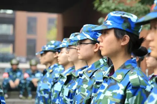 当文雅秀气的女孩们穿上一身绿色的军装,顿时平添一股英气。这是女孩来到浙大的第一课,英挺的军姿,坚毅的目光,简直是一个大写的“帅气”!我们的刚强与柔美从此刻开始细细雕琢。