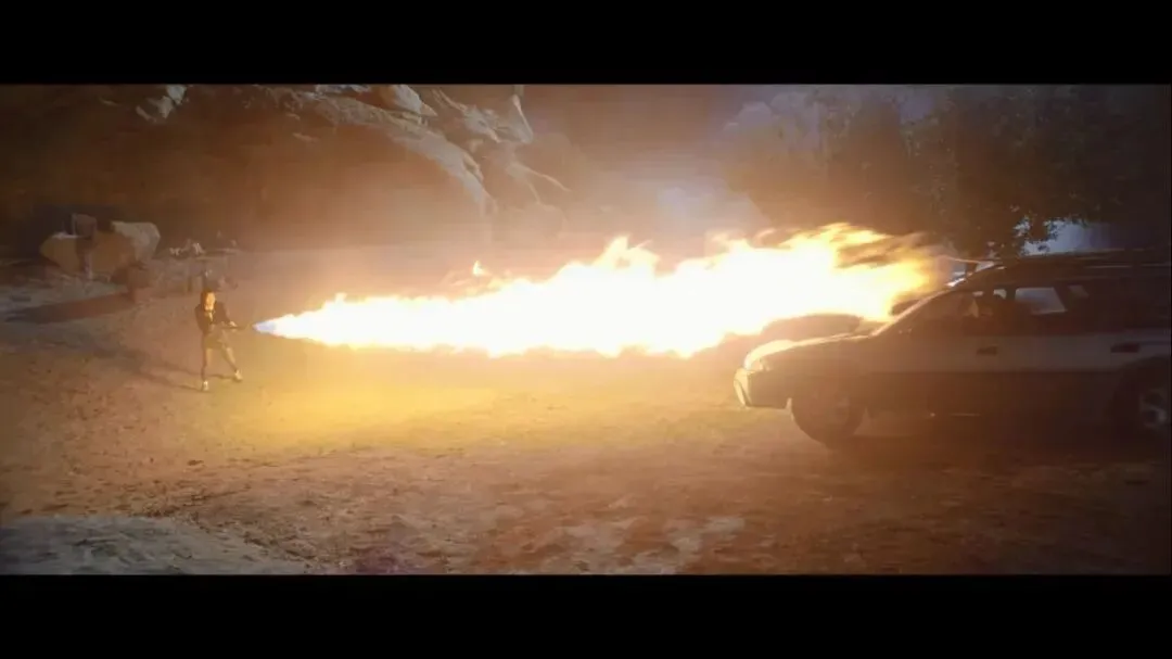 几个回合后,他们开车把喷火女怼死在了岩壁上。