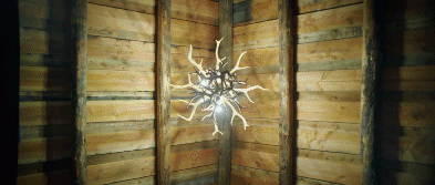 比如小黑哥追进小木屋后,被丫丫叉叉的鹿角灯插死;