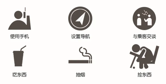 开车时,这些动作易导致“分心驾驶”。↓↓↓