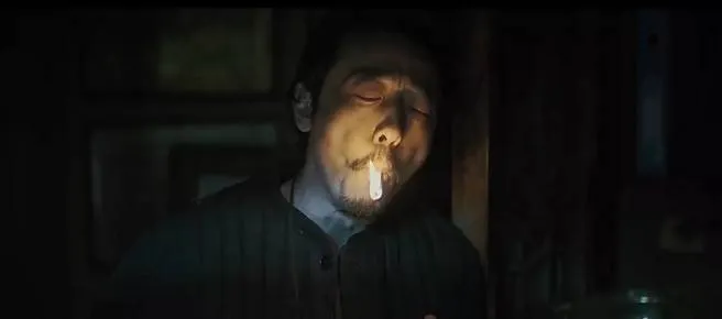 每次杀完人,李丰田都会在一片黑暗中来根事后烟,这也是观众眼中最经典的那个镜头——反向抽烟。