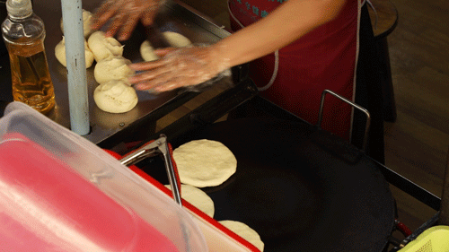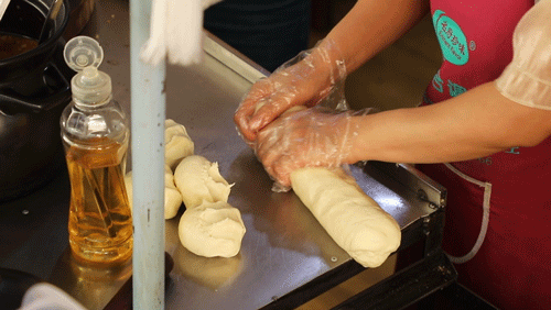 馍都是现做现烙的,阿姨这么娴熟且有力的手法,一看就知道她“食过夜粥”,难怪馍吃起来这么香韧可口啦!馍在炉上烤的时候,随之散发出淡淡面香味,我已经食指大动了!