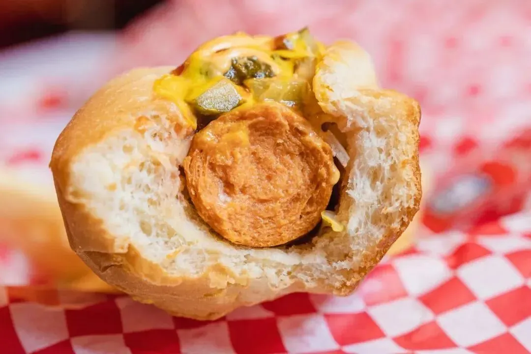 番茄酱和芝士酱混搭,真的太可了!爱酱星人必点!夹着热狗的面包非常香软热狗肉质鲜嫩!当然啦,个人觉得这款热狗的精髓在于酱料!