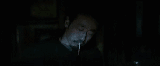 每次杀完人,李丰田都会在一片黑暗中来根事后烟,这也是观众眼中最经典的那个镜头——反向抽烟。