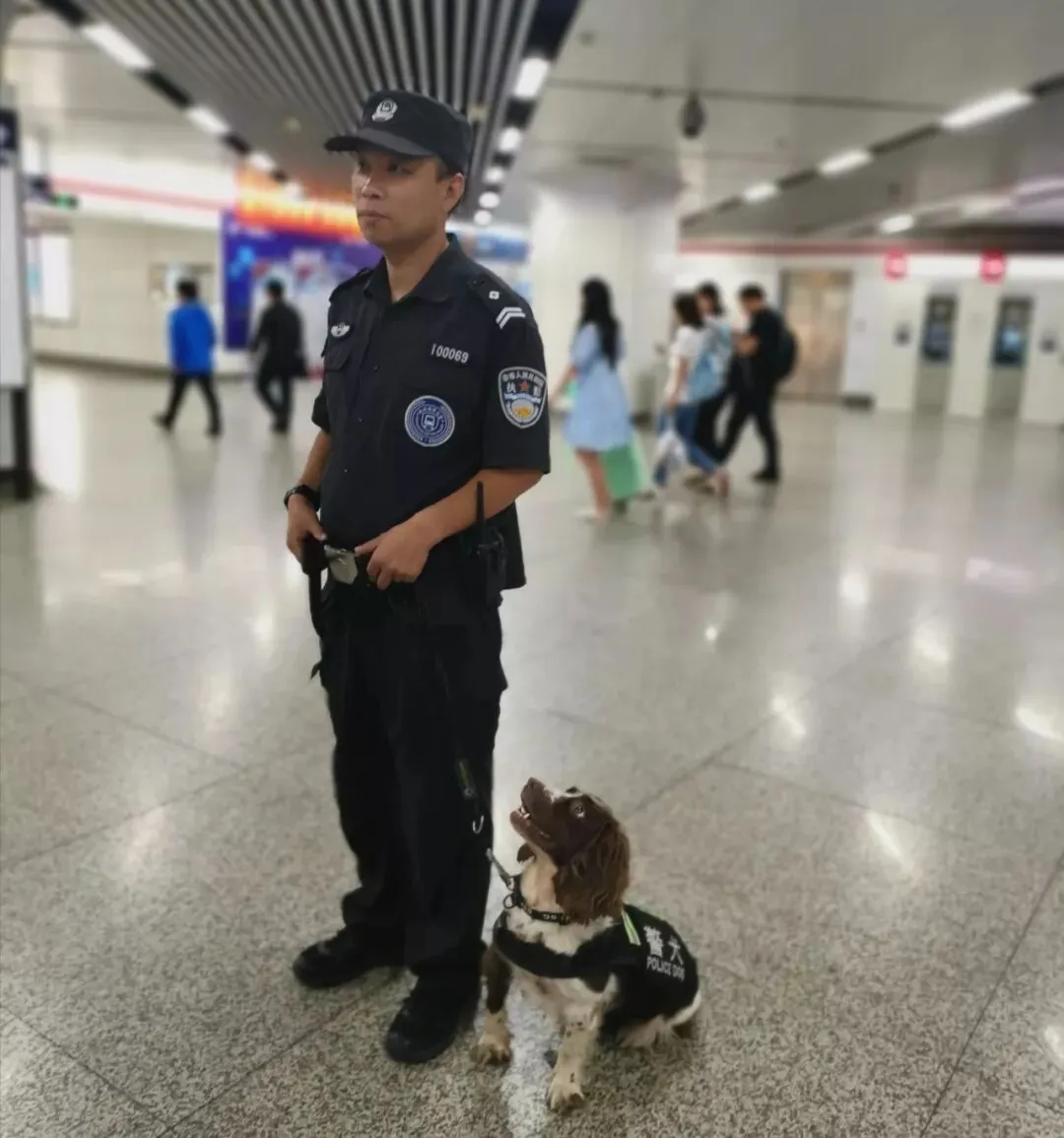 作为一只老警犬,灵犀是有大局观和包容心的。它收拾好心态,决心站好国庆期间的每一班岗。一到地铁站,穿上警服,它就直勾勾地盯着自己的训导员,密切关注训导员的每一步指示。