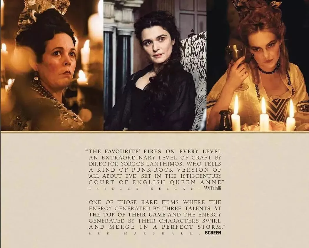 整个故事是三个女性的权力争夺和欲望绽放,折射斯图亚特王朝上流世界的社会群像。