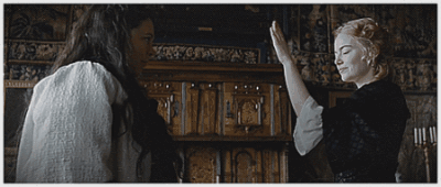 许是「夫死儿亡」的痛苦遭遇,导致女王慢慢走向同性恋情。此点设定,可谓大胆。