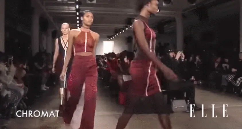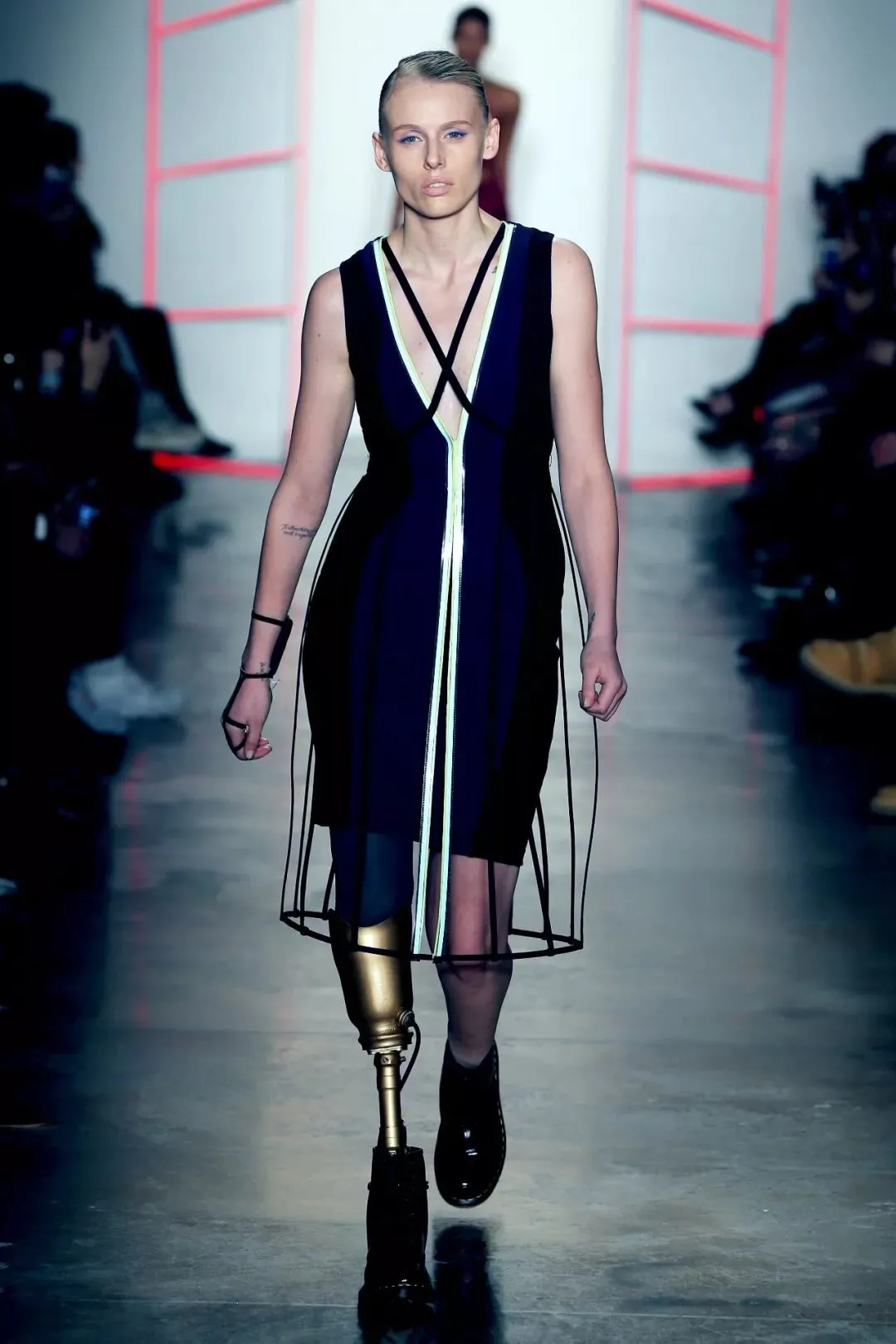 2016年的时候更是登上了纽约时装周,为品牌Chromat 走秀。在秀场上,Lauren Wasser 穿上品牌经典的骨架裙,干练又帅气▼