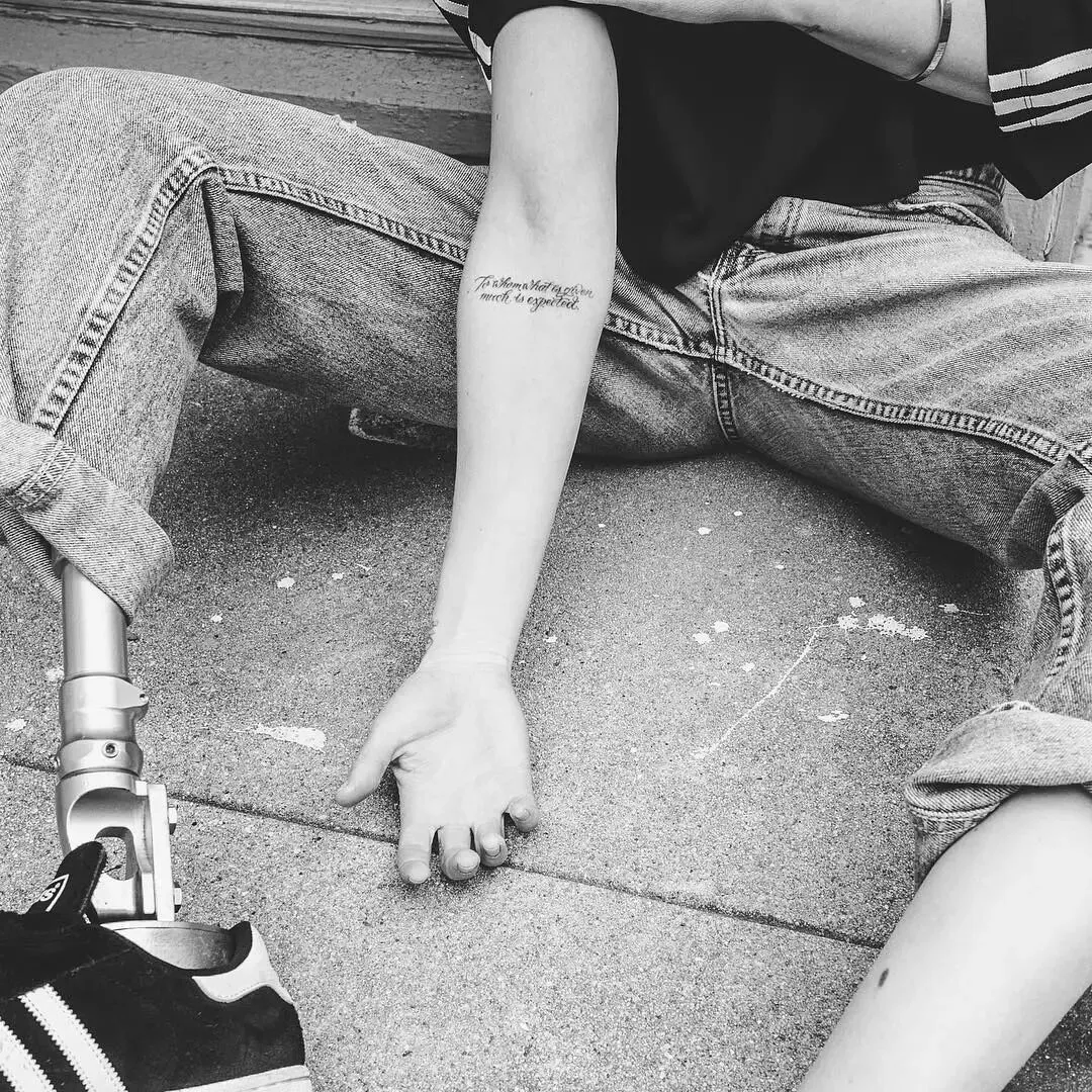 ▲纹身:“To whom what is given, much is expected”(那些被厚赐的人,也将被期待付出更多)