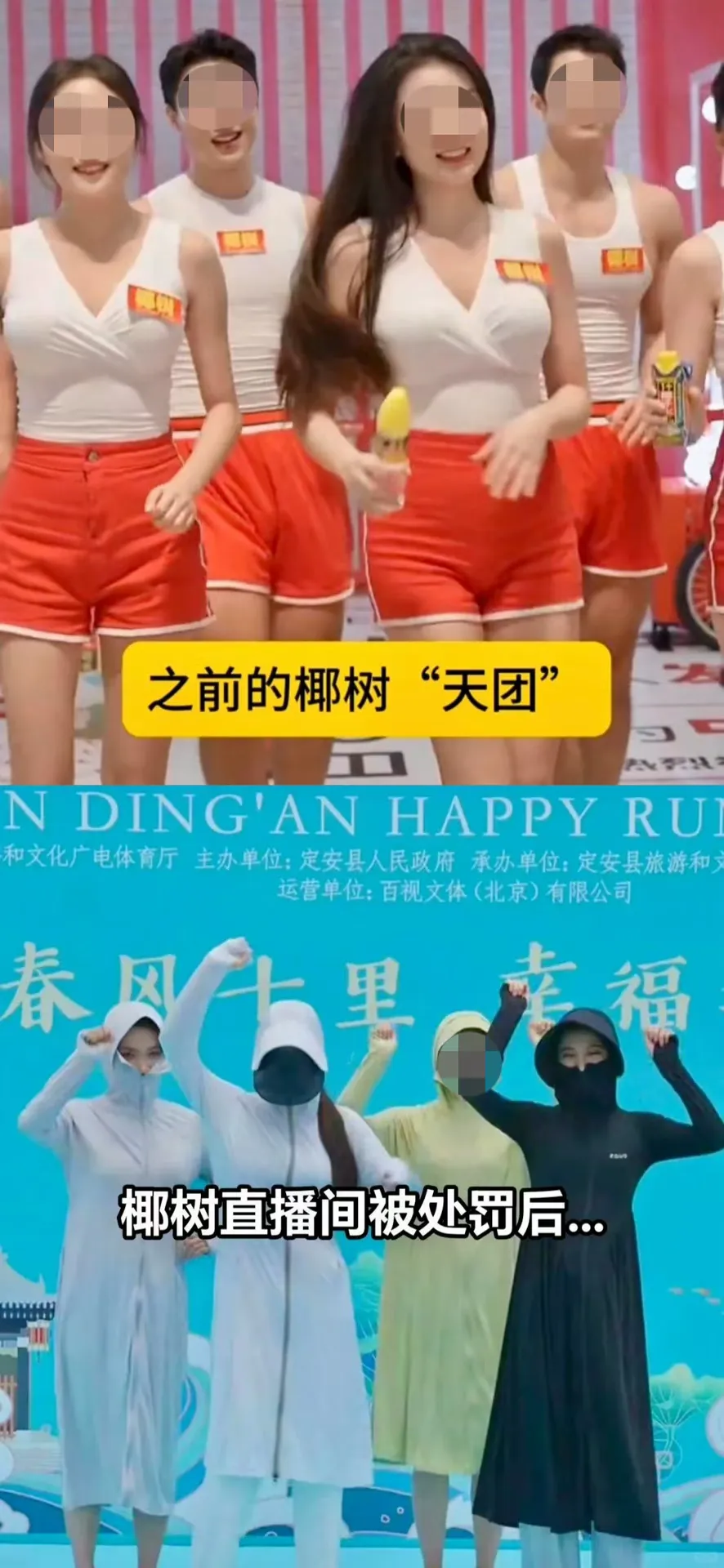 吃了罚单后,椰树变得谨慎多了。直播间里,身材姣好的主播们全员穿上了防晒衣,裹得严严实实,甚至连脸都不露了。