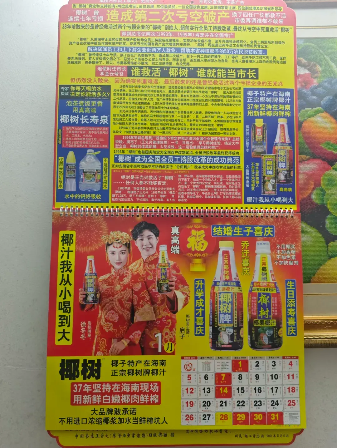 每一页都在重复讲述救厂功臣和企业历史,椰树真的把品牌故事浓缩到这本日历之中了