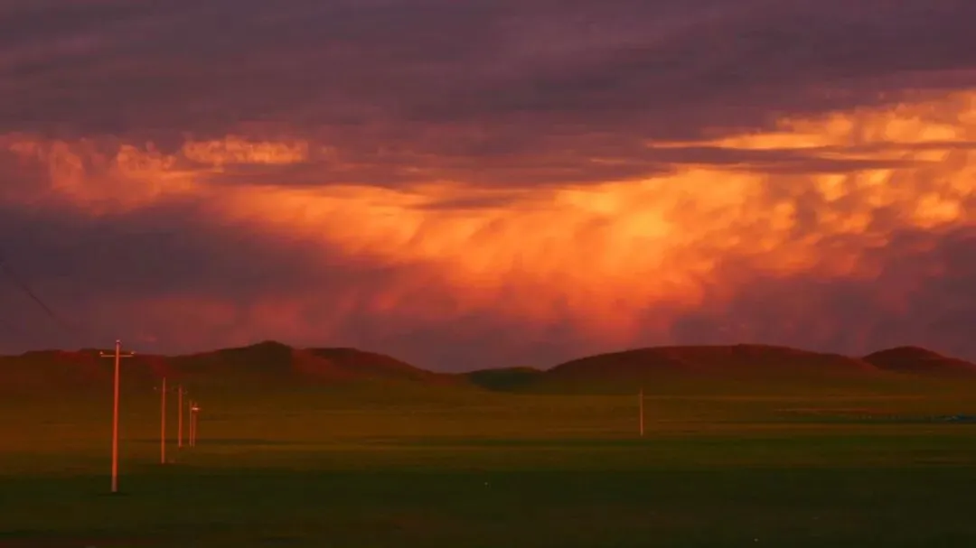 草原黄绿更迭,落日余晖下牛羊奔腾,年复一年。