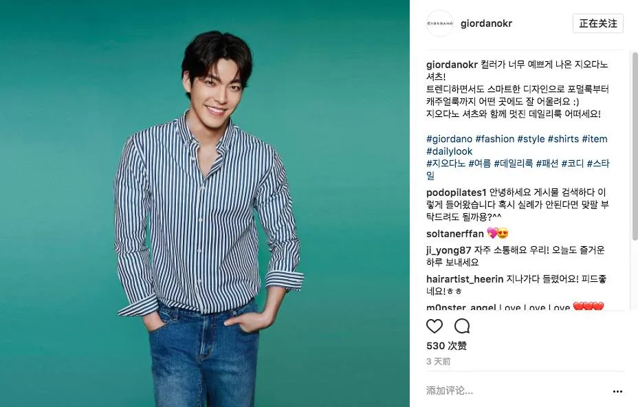 而让金宇彬和申敏儿结缘的Giordano,在6月的时候默默更新了一组新照片,照片的主角还是那个爱笑的他。在另外品牌“弃用”的新闻传出时,依然选择力挺金宇彬。