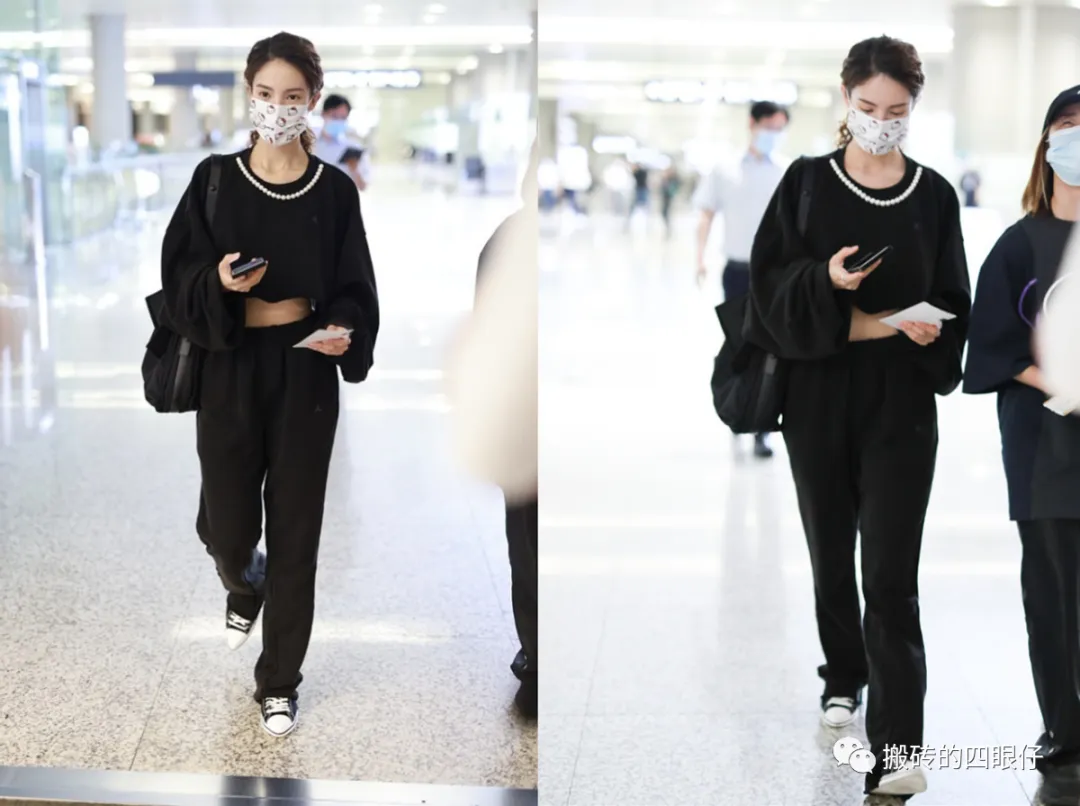 就像黑色短款卫衣,即使是在生活中穿,也都不会有任何的违和感,同时针对小个子女生穿,还能塑造出个性化效果,在服装上白色珍珠做装饰,点缀起来也很美观,搭配黑色长裤,全黑穿搭好飒。