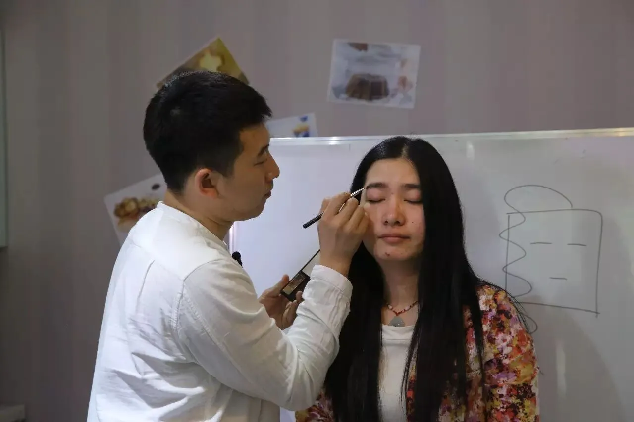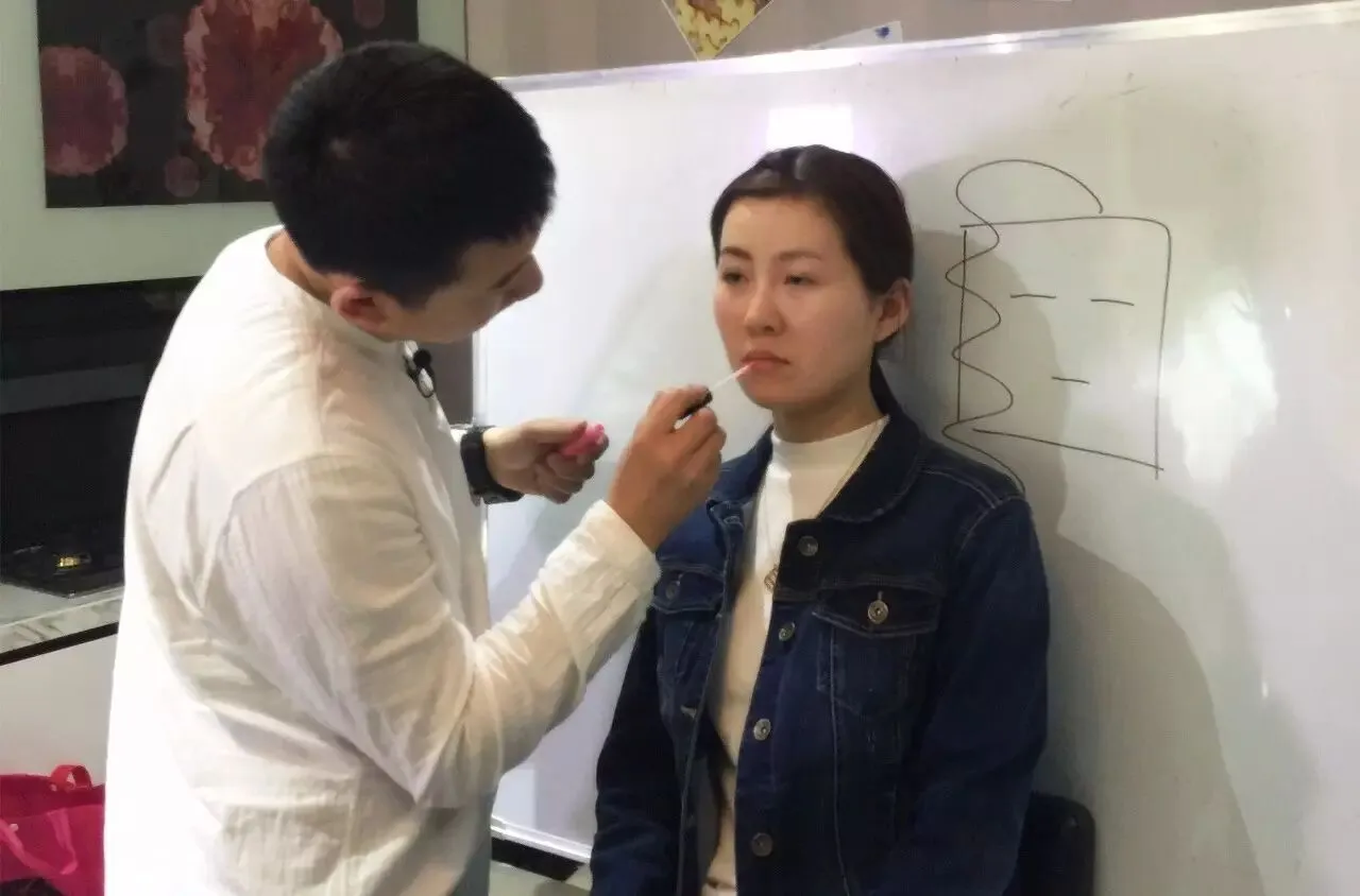 化妆造型师传龙老师为到场的女学员讲授美妆课程之一“约会妆“的化法。