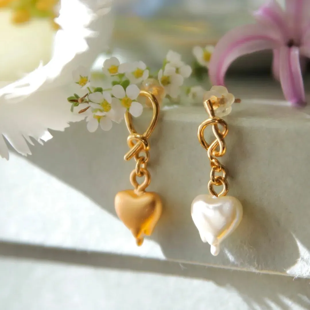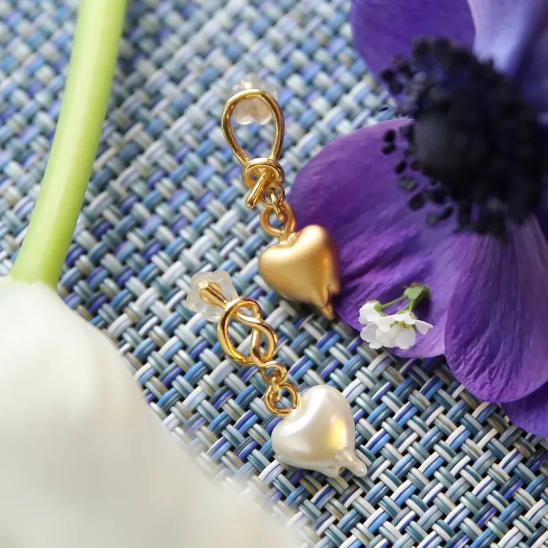 上次的项链开售后,有盆友提议“融化的心”很适合拿来做成耳环。其实我自己手上就有一副tasaki的心型珍珠耳环,但他们家的爱心珍珠采用专利技术培育而成,产量少价格高,没法进行大量生产。因此我们尝试将“融化的心”等比例缩小,效果果真和想象中一样出彩。