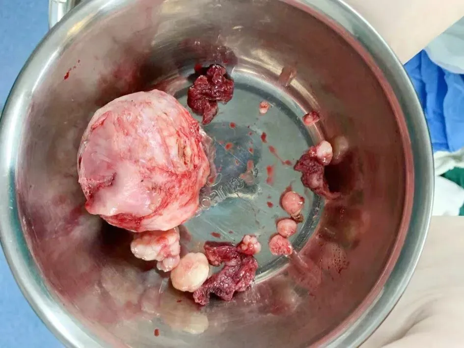杜女士,39岁,宁阳县伏山镇人,平时月经周期长,出血量多,查体时发现子宫肌瘤,当时杜女士未进行任何治疗。两个月前杜女士自觉左下腹部坠痛难忍,意识到问题严重性来我院就诊。门诊以子宫肌瘤收治入院。10月4日,行阴式子宫肌瘤剔除术。