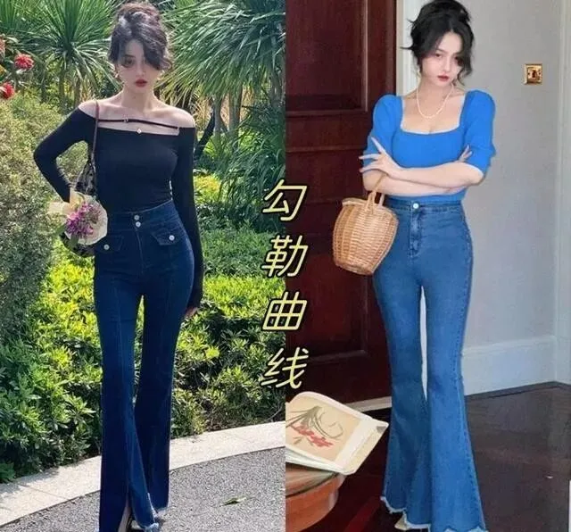裤脚微微外扩 , 像马蹄一样 , 能把臀部和腿部线条修饰得很好看。