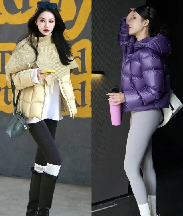 有一阵子我执着于套短羽绒服加九分瑜伽裤,结果每次都觉得腿短一截,尤其是小腿肚子那里,膨胀得很奇怪。后来在咖啡馆遇到一个同龄女生,她穿的是:瑜伽裤+盖胯长毛衣+及踝短靴。三段式切分,裤脚塞进靴子,裤腰被长毛衣盖一半,直接把下半身“切”成三块。她说这样穿,屁股宽、腿不直、小肚子全能糊弄过去。