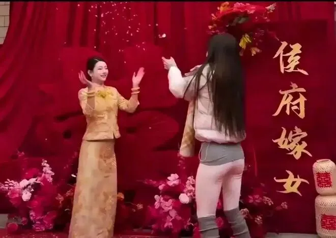 可在男方亲属眼中,这身穿搭却成了“不雅”的代名词。家族群里的讨论迅速发酵,视频被转发到公共平台后,男性网友的质疑声更是扑面而来。“婚礼不是健身房,穿这么贴身露曲线,让长辈怎么看?”
