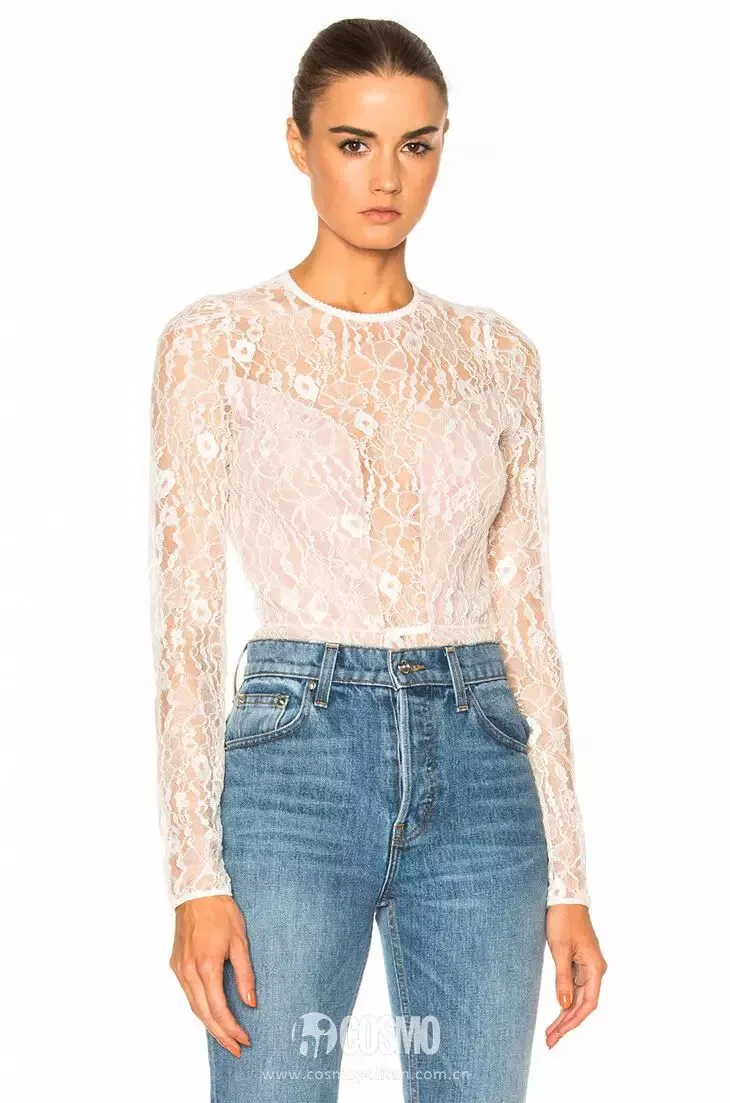 同样是蕾丝上衣,搭配牛仔裤的话,那么画风就一下变得率性起来。所以说蕾丝上衣能搭出什么感觉,完全也取决下半身的搭配哦。