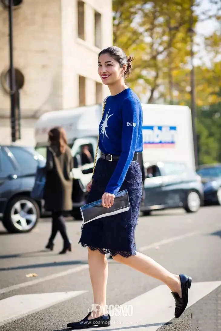 搭配一条合身的铅笔裙,再加上一件蕾丝上衣,知性又兼具优雅气质的Lady形象就出现在眼前,气场也非常强大。