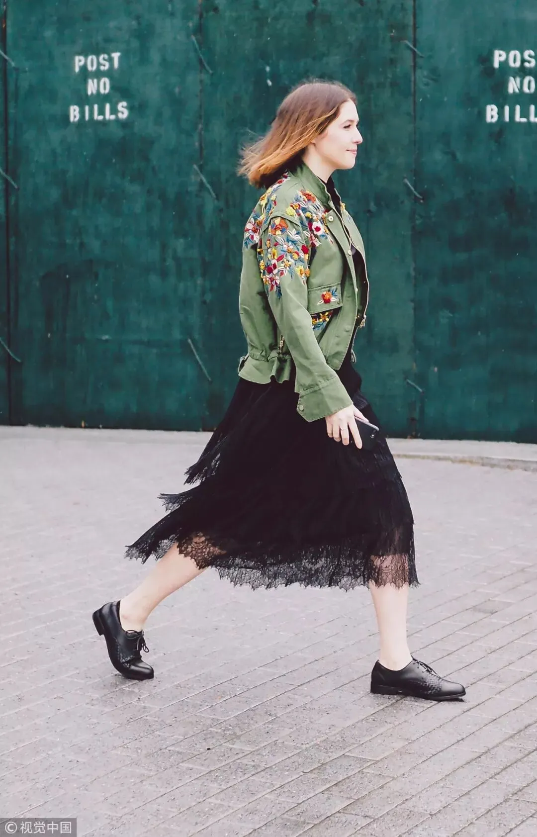 蕾丝和半裙是天生的一对!只要在裙摆处点缀一小块蕾丝,整条裙子立刻就优雅起来。