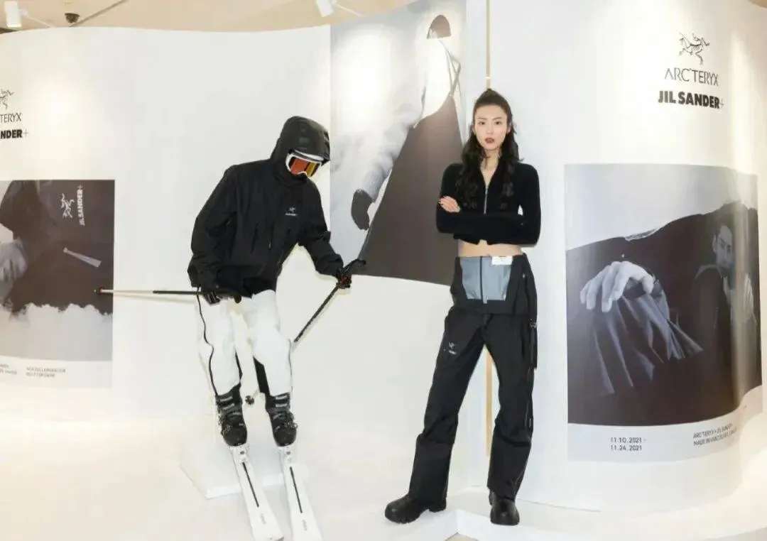 到了2021 年秋季,以登山、滑雪和高山技术着称的高性能户外装备品牌始祖鸟首次与德国时尚极简主义品牌 Jil Sander 合作,超模刘雯作为始祖鸟代言人,身着联名款造型,极大区别于以往户外的刻板印象,很好的诠释了gorpcore 风格。