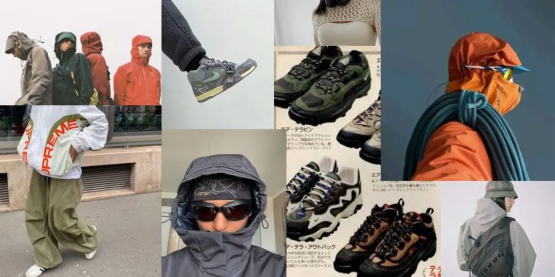 保留了gorpcore关于户外科技等元素,融合街头风,辣妹甚至是学院风,变得更加的时髦前卫