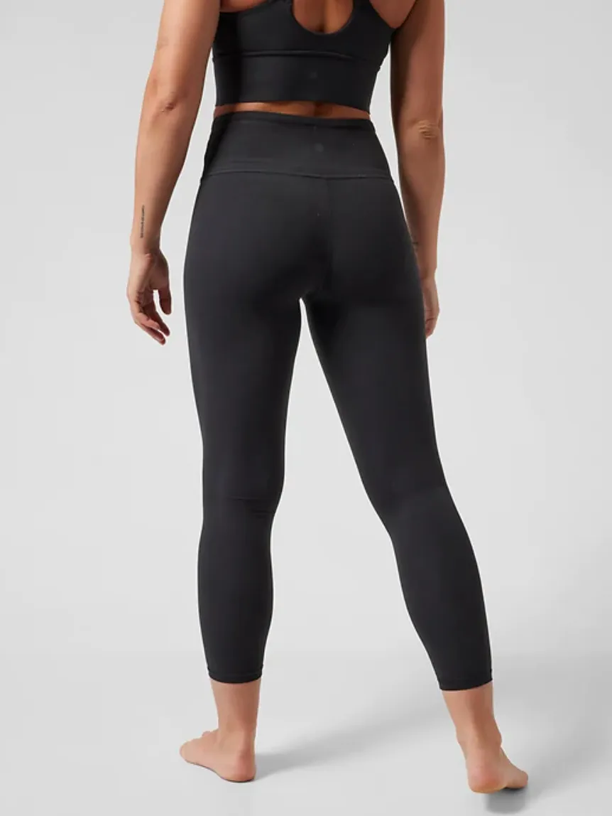 对于 CrossFit 和力量训练,FitHouse 力量教练 Nina Marchione 更喜欢 Athleta 的 Powervita 紧身裤。「它们非常柔软,可以很好地配合身体的移动,它们还提供轻微的压缩和支撑,因此大多数身材穿着它们看起来都很棒,」她说。这款瑜伽裤有三层腰带,内衬网眼,可将紧身裤固定在适当的位置——而且瑜伽裤是无缝的,这让它们特别舒适。