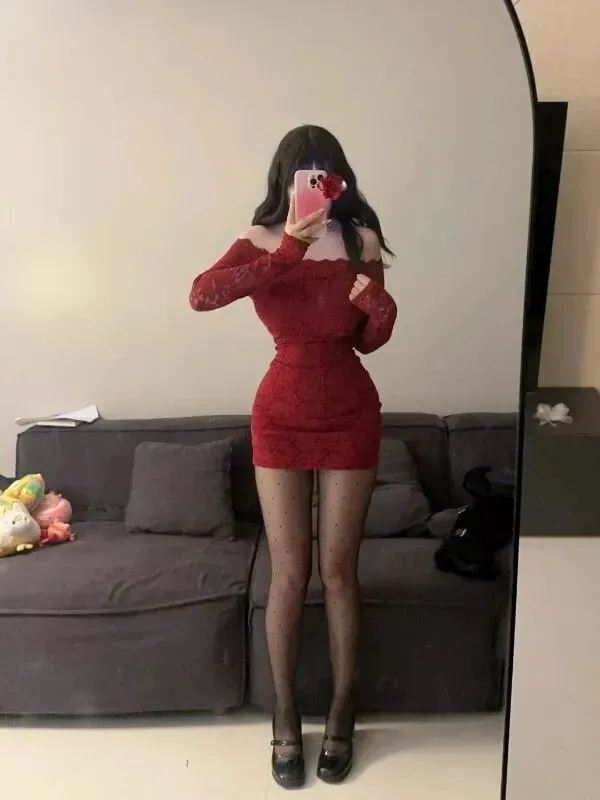 这组穿搭没有繁复的配饰堆砌,却用酒红蕾丝与黑丝的经典组合,把女性的柔媚与个性揉合得恰到好处。它证明了一件剪裁合宜的裙装,足以成为平凡时刻里的高光,让镜前的每一次定格,都成了独属于自己的风情叙事。