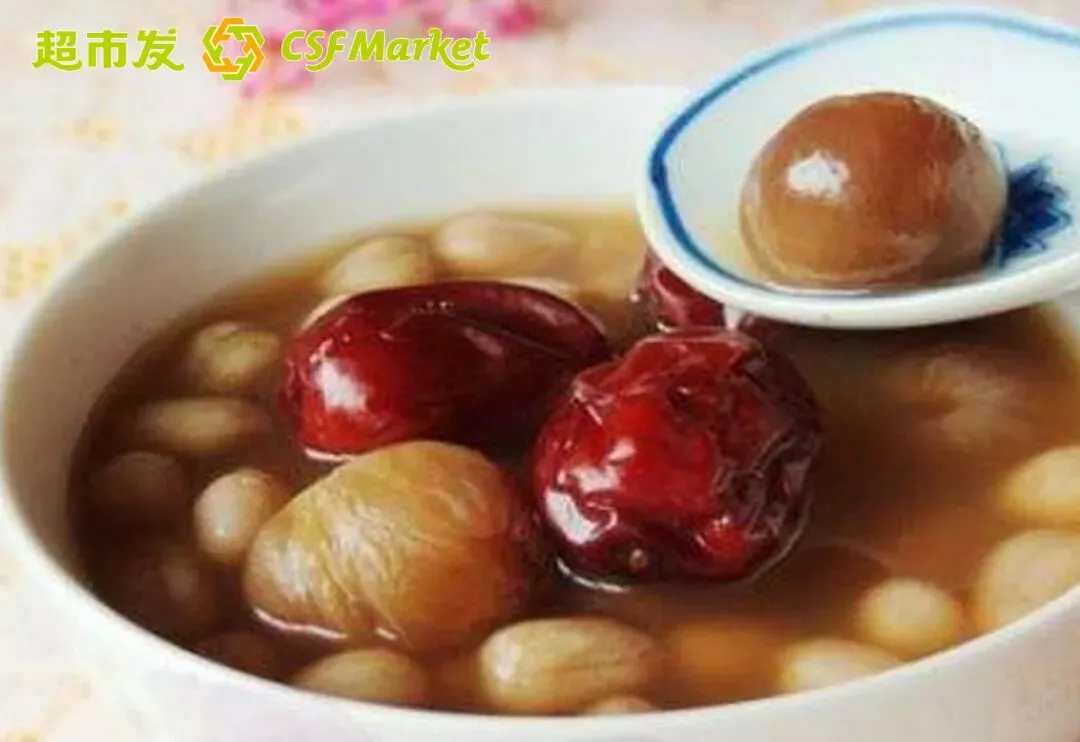 桂圆,像龙的眼睛,寓意着一家人团团圆圆。
