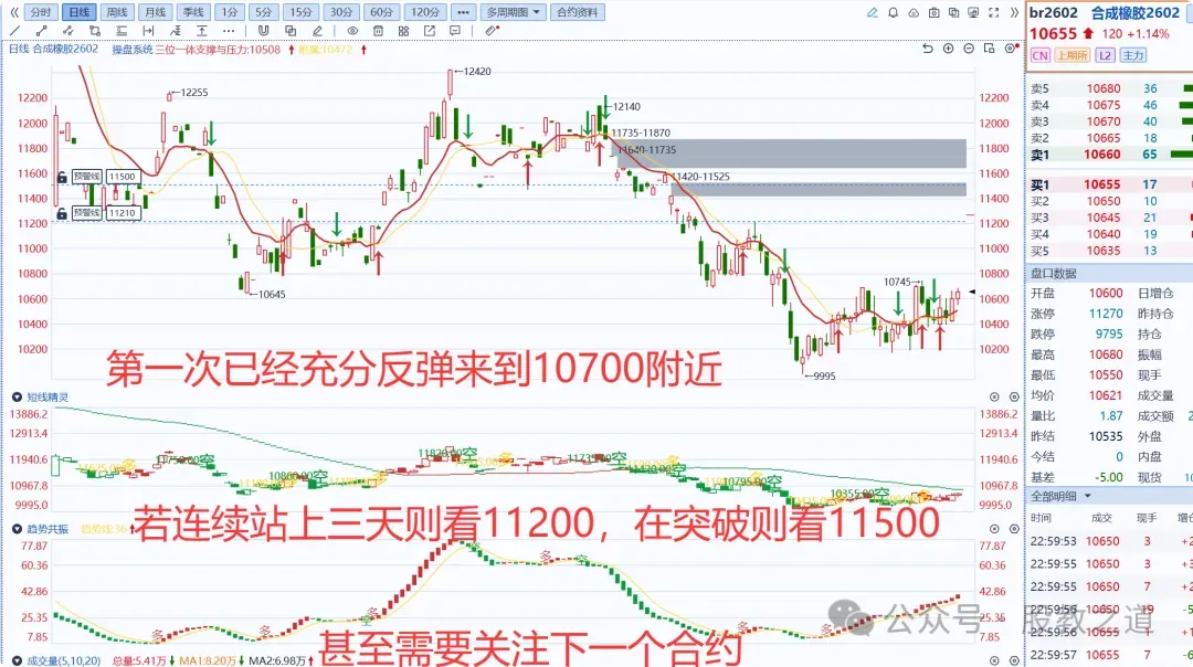 合成橡胶从12.11号10600开始到11210后开始回调,又从11600-11200完美的500点之上,上方有标注,又从11200到11500,截至12.31号来到是10500!其周期上涨达900点,恭喜兄弟们,而且这些位置的压力位则来自独创的信号系统,支撑与压力一目了然!