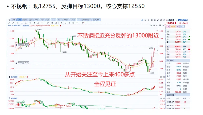 包括沪镍完成131000的充分反弹,以及不锈钢的13000的充分反弹,分别上涨不锈钢500点与沪镍10000点的周期量价!且硅铁与锰硅也已经充分反弹!当然那么多品种有对,必然也会有错,我也一直定义自己是市场的学生!不断总结学习!摸着良心做事!