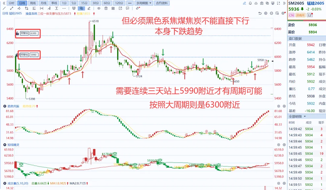 锰硅与硅铁完成位置走势!从12.22号开始到12.30号来到5960附近