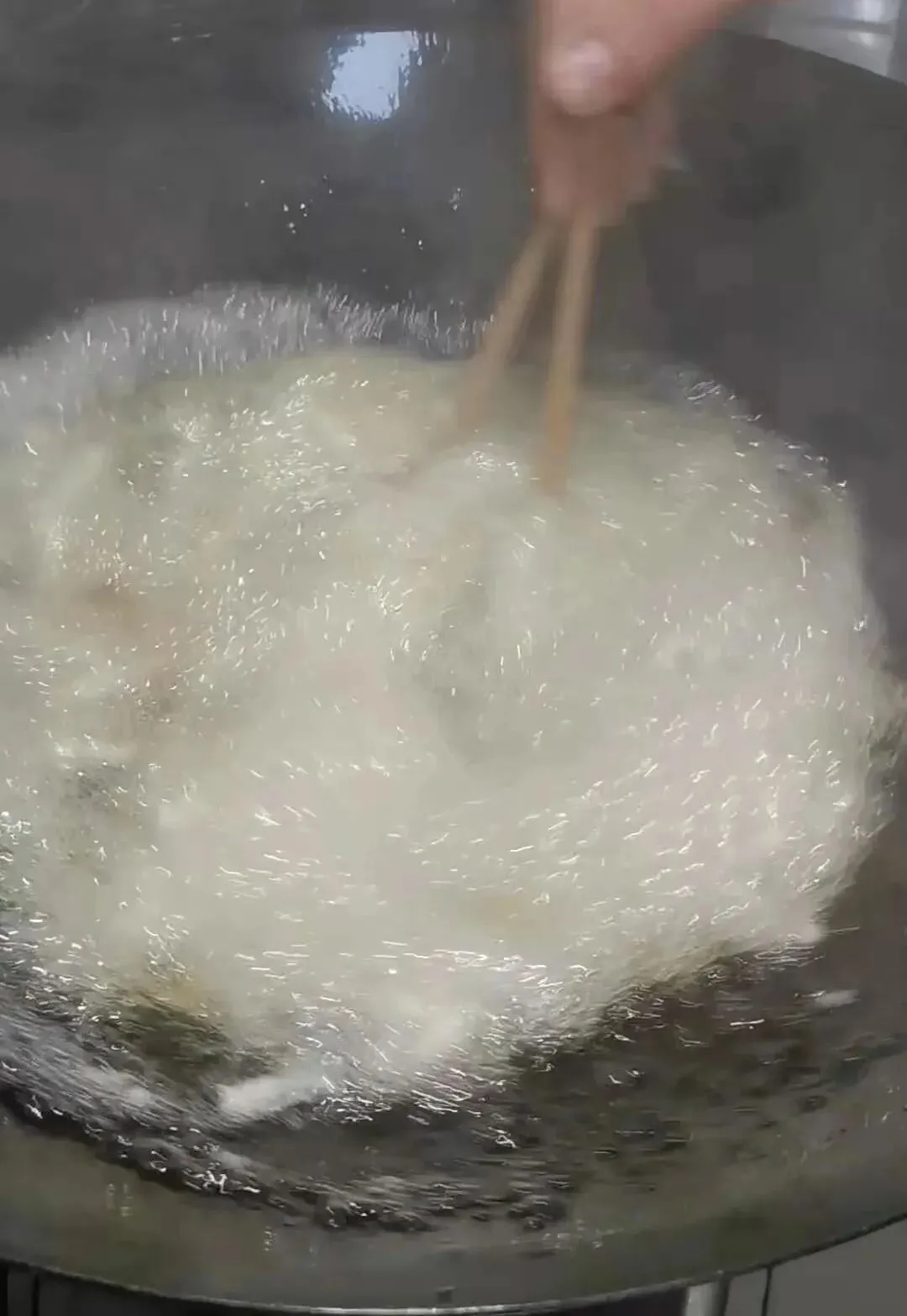 接下来酱汁的制作至关重要,锅内少许底油,先炒糖色,待糖完全融化后,放入甜面酱。这里我们选择的是葱伴侣甜面酱,厨师介绍说,这样更好的出味。锅内酱汁冒小气泡后,下入控好油的肉丝,快速翻炒。可依据个人口味加入适量耗油、老抽调色。