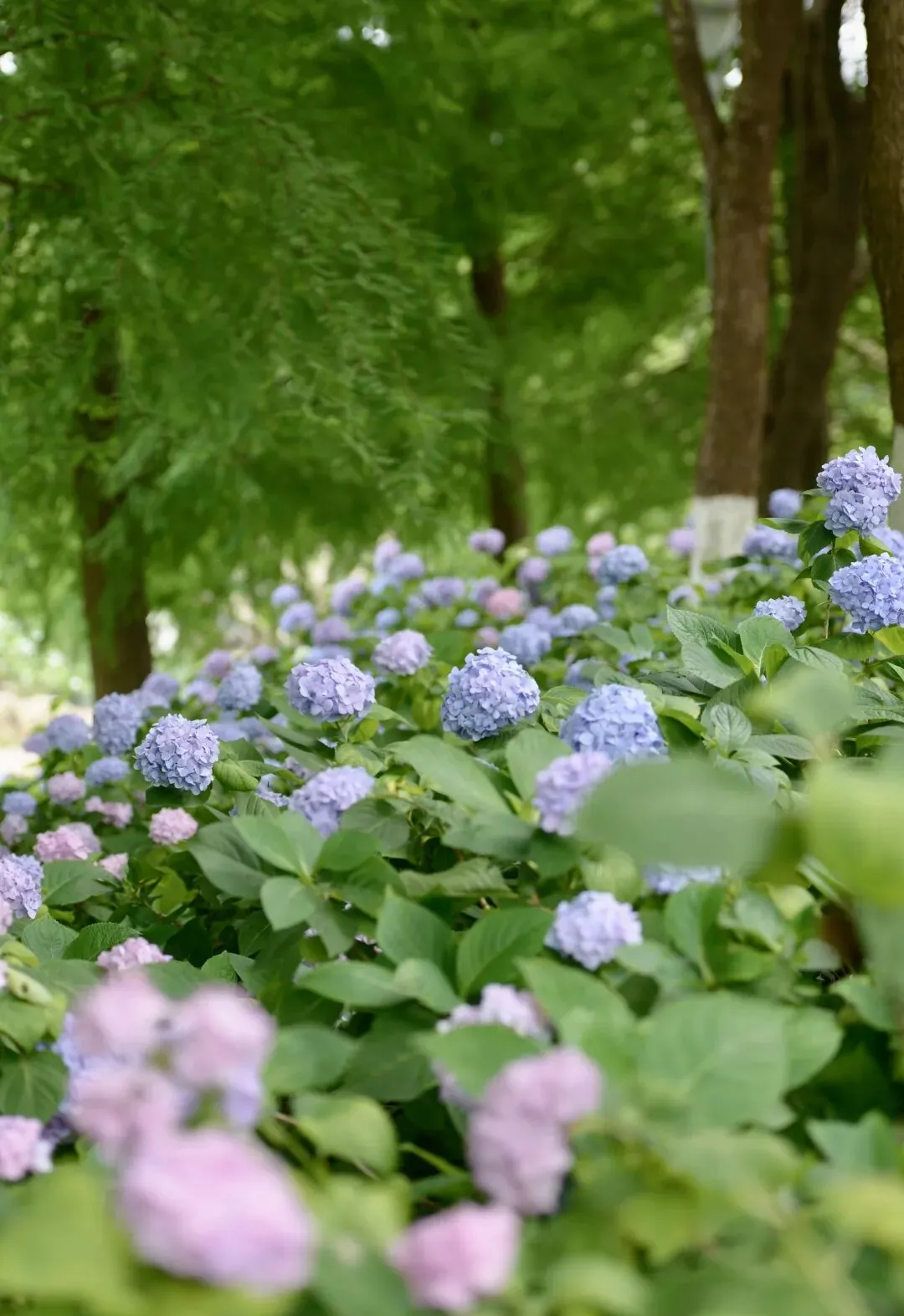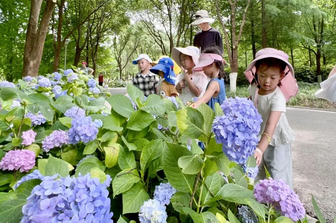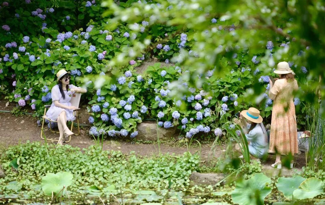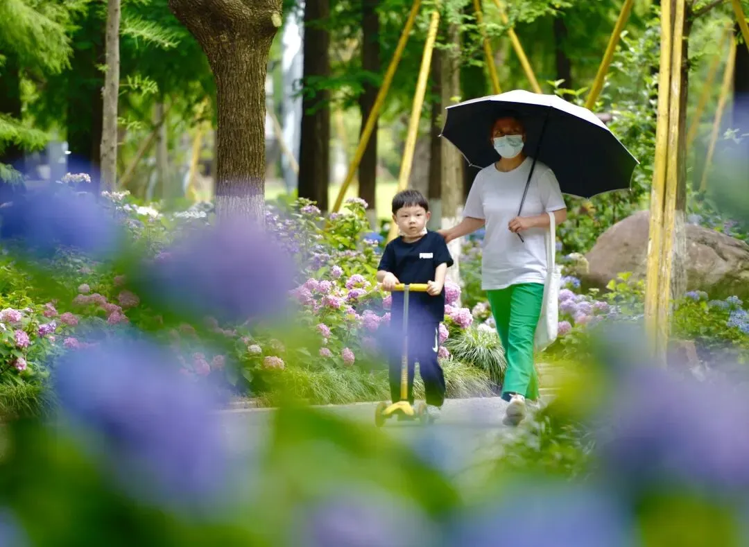 近日,我市天气晴好,杨府山公园里栽种的3000多株娇艳可人的绣球花吸引了许多市民前来赏玩“打卡”,成为社交平台上的“爆款”。