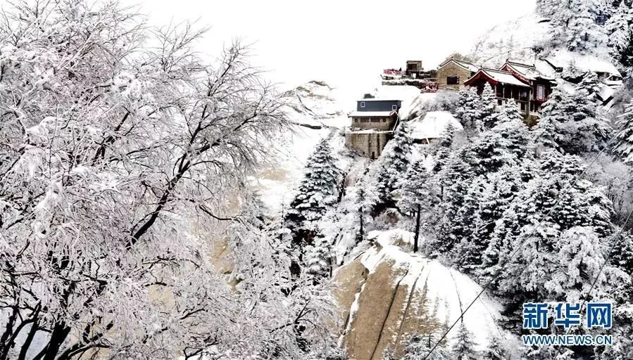 11月18日,华山南峰被满山的雪凇装扮得分外娇艳。一场纷纷扬扬的大雪将西岳华山装扮得银装素裹,满山的雪凇让游客流连忘返。